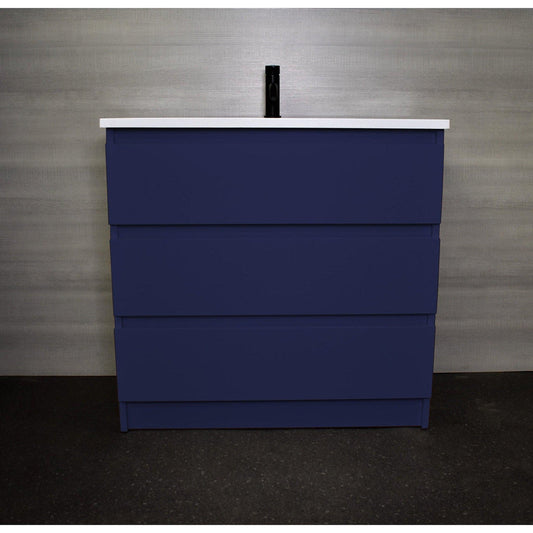 Volpa USA Pepper 36" x 20" Navy Modern Freestanding Bathroom Vanity With Acrylic Top, Integrated Acrylic Sink and drawers