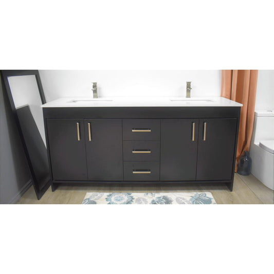 Volpa USA Capri 72" x 22" Gray Freestanding Modern Bathroom Vanity With Undermount Double Sink And White Microstone Top With Brushed Nickel Edge Handles