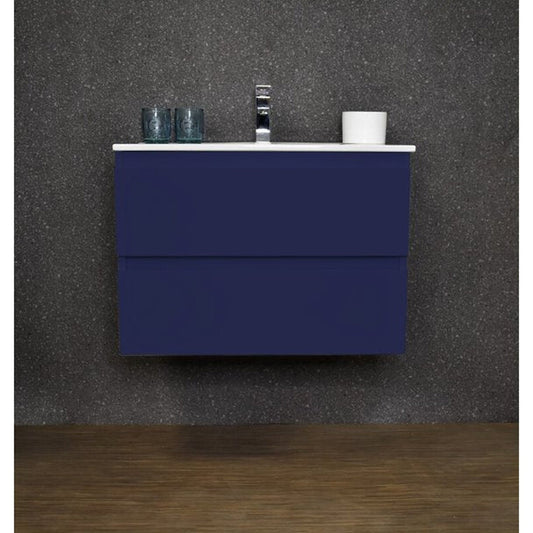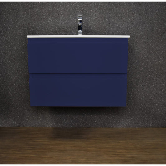 Volpa USA Salt 30" x 18" Navy Wall-Mounted Floating Bathroom Vanity With Drawers, Integrated Porcelain Ceramic Top and Integrated Ceramic Sink