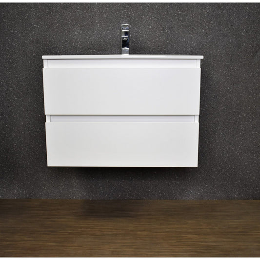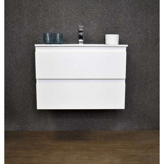 Volpa USA Salt 30" x 18" Glossy White Wall-Mounted Floating Bathroom Vanity With Drawers, Integrated Porcelain Ceramic Top and Integrated Ceramic Sink