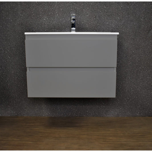 Volpa USA Salt 30" x 18" Gray Wall-Mounted Floating Bathroom Vanity With Drawers, Integrated Porcelain Ceramic Top and Integrated Ceramic Sink