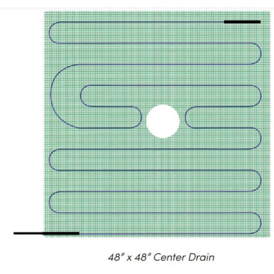 WarmlyYours TempZone Shower Mat 48” x 48” 120V Center Drain Electric Shower Floor Heating Kit With nSpire Touch Programmable Touchscreen Thermostat