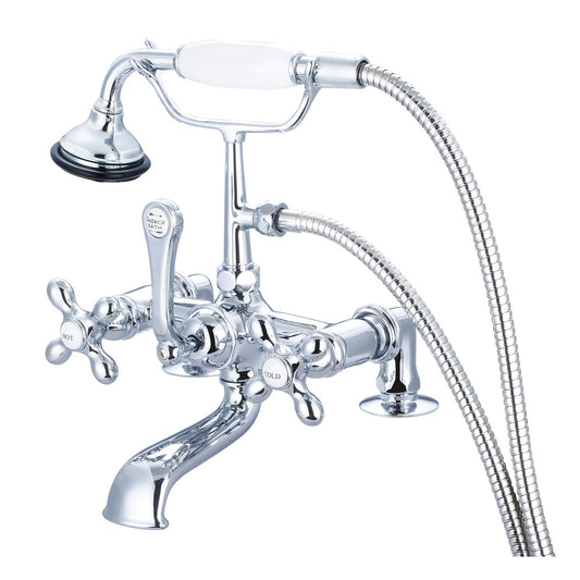 Water Creation Vintage Classic Spread Deck Mount Tub F6-0006 7" Silver Solid Brass Faucet With 6-Inch Risers And Handheld Shower And Metal Lever Handles, Hot And Cold Labels Included