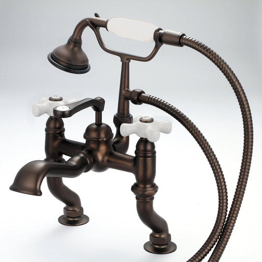 Water Creation Vintage Classic Adjustable Center Deck Mount Tub F6-0004 3.25" Brown Solid Brass Faucet With Handheld Shower And Porcelain Cross Handles, Hot And Cold Labels Included