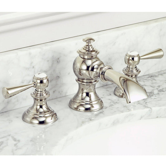 Water Creation American 20th Century Classic Widespread Lavatory F2-0012 8" Ivory Solid Brass Faucet With Pop-Up Drain And Porcelain Lever Handles, Hot And Cold Labels Included