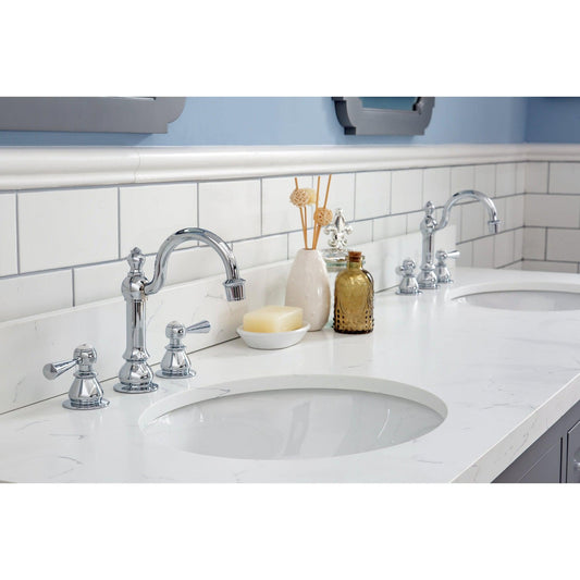 Water Creation Queen 72" Double Sink Quartz Carrara Vanity In Cashmere Grey With F2-0013-01-FX Lavatory Faucet(s)