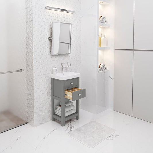Water Creation Vera 18" Cashmere Grey MDF Single Bowl Ceramics Top Vanity With U Shape Drawer