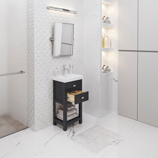 Water Creation Vera 18" Espresso MDF Single Bowl Ceramics Top Vanity With U Shape Drawer