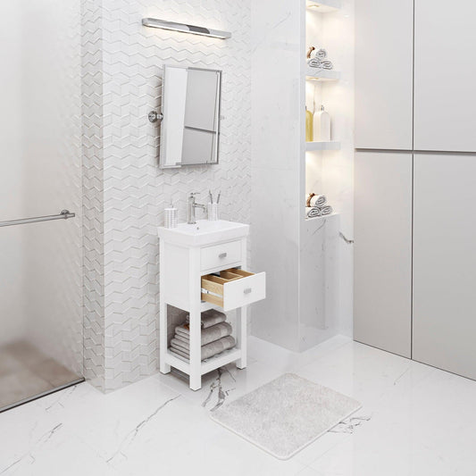 Water Creation Vera 18" Pure White MDF Single Bowl Ceramics Top Vanity With U Shape Drawer