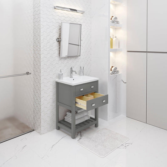 Water Creation Viola 24" Cashmere Grey MDF Single Bowl Ceramics Top Vanity With U Shape Drawer