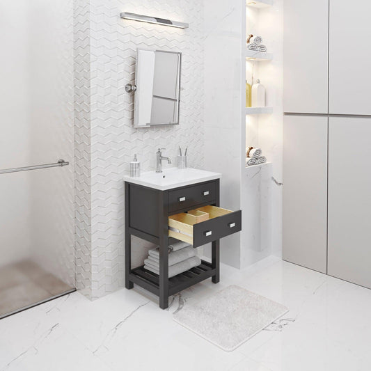Water Creation Viola 24" Espresso MDF Single Bowl Ceramics Top Vanity With U Shape Drawer