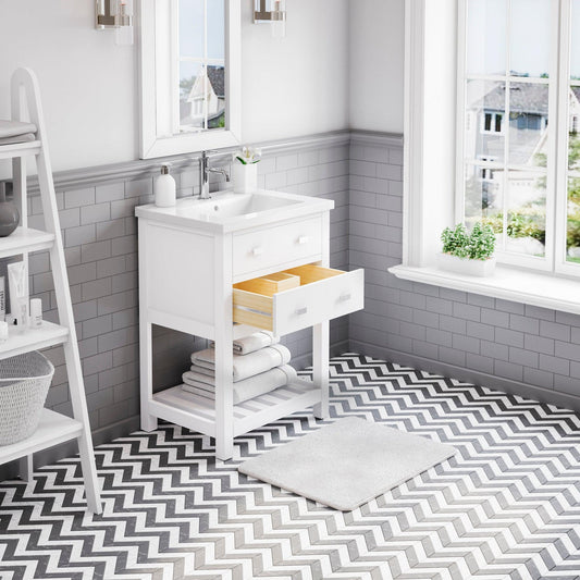 Water Creation Viola 24" Pure White MDF Single Bowl Ceramics Top Vanity With U Shape Drawer