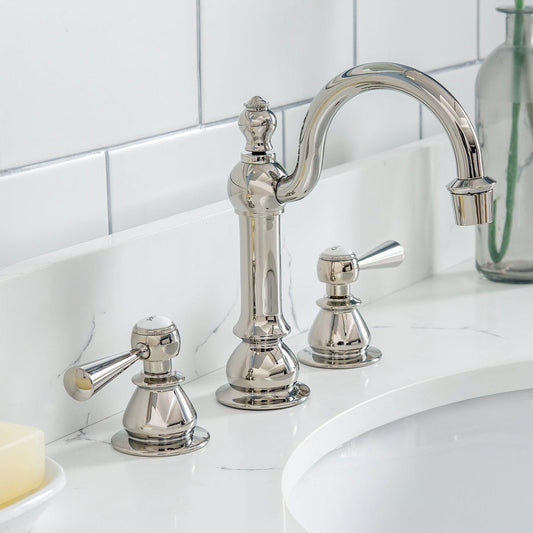 Water Creation Queen 60" Double Sink Quartz Carrara Vanity In Pure White With F2-0012-05-TL Lavatory Faucet(s)