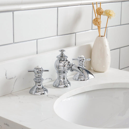 Water Creation Queen 24" Single Sink Quartz Carrara Vanity In Pure White With F2-0009-05-BX Lavatory Faucet(s)