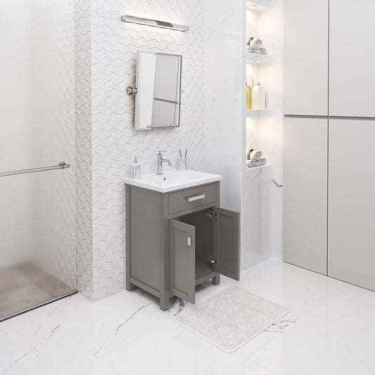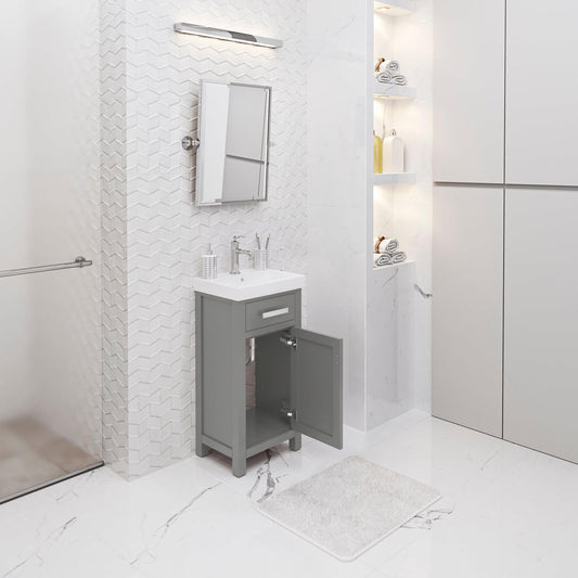 Water Creation Mia 18" Cashmere Grey MDF Single Bowl Ceramics Top Vanity With Single Door