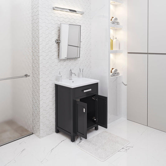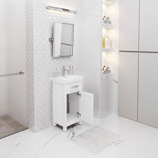 Water Creation Mia 18" Pure White MDF Single Bowl Ceramics Top Vanity With Single Door