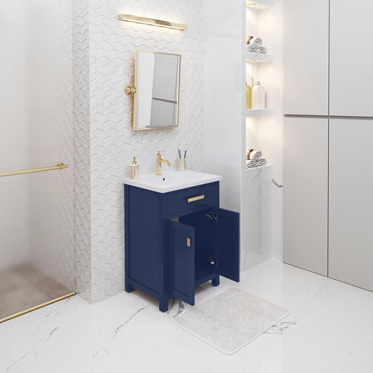 Water Creation Myra 24" Monarch Blue MDF Single Bowl Ceramics Top Vanity With Double Door