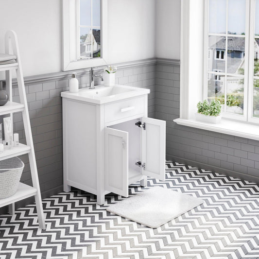 Water Creation Myra 24" Pure White MDF Single Bowl Ceramics Top Vanity With Double Door