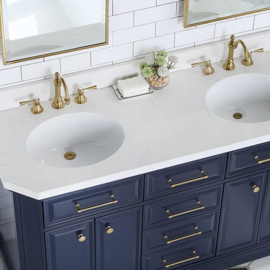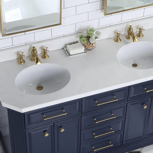Water Creation Palace 60" Double Sink White Quartz Countertop Vanity in Monarch Blue