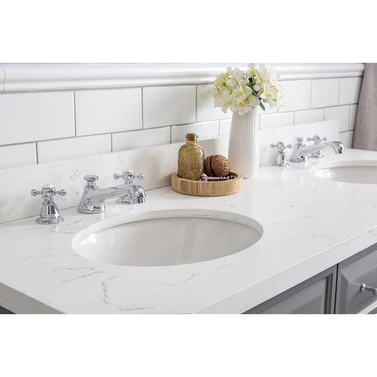 Water Creation Palace 60" Quartz Carrara Cashmere Grey Bathroom Vanity Set With Hardware And F2-0012 Faucets in Chrome Finish