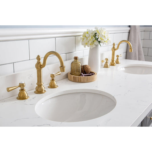 Water Creation Palace 60" Quartz Carrara Cashmere Grey Bathroom Vanity Set With Hardware, F2-0012 Faucets in Satin Gold Finish And Only Mirrors in Chrome Finish