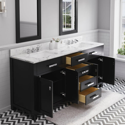 Water Creation Madison 72" Pure White Double Sink Bathroom Vanity With 2 Matching Framed Mirrors And Faucets