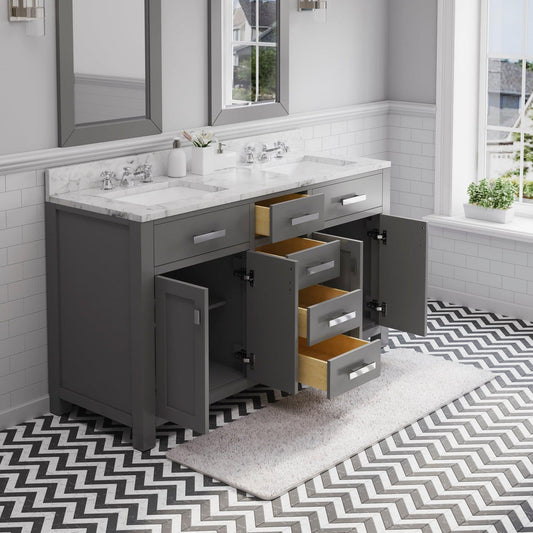 Water Creation Madison 60" Cashmere Grey Double Sink Bathroom Vanity With Faucet