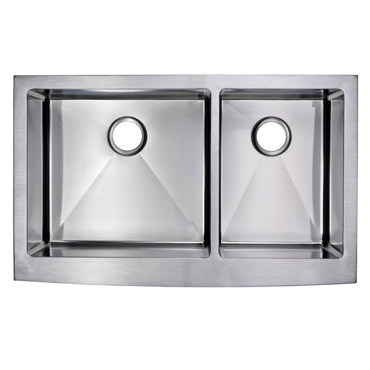 Water Creation Corner Radius 50/50 Double Bowl Stainless Steel Hand Made Apron Front 33 Inch X 22 Inch Sink