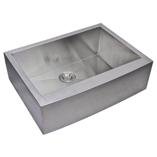Water Creation Zero Radius Single Bowl Stainless Steel Hand Made Apron Front 30 Inch X 22 Inch Sink With Drain And Strainer