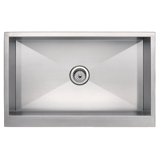 Water Creation Zero Radius Single Bowl Stainless Steel Hand Made Apron Front 33 Inch X 21 Inch Sink With Drain And Strainer