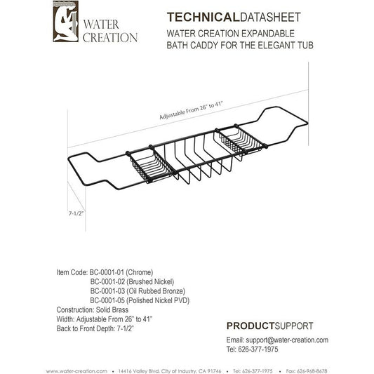 Water Creation Expandable Bath Caddy For The Elegant Tub in Chrome Finish