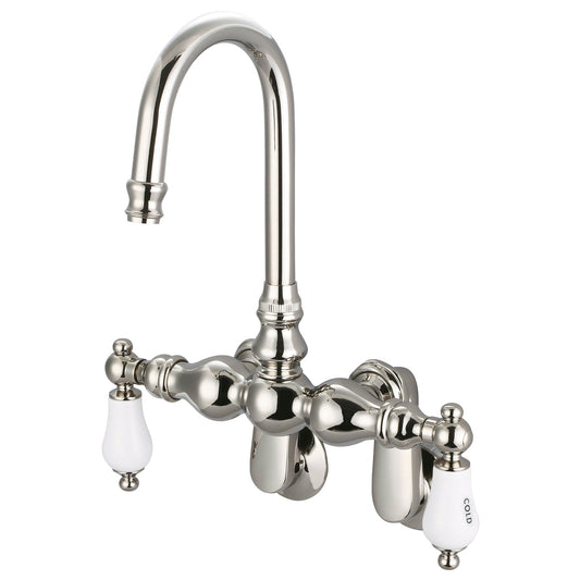 Water Creation Vintage Classic Adjustable Spread Wall Mount Tub F6-0015 9.25" Silver Solid Brass Faucet With Gooseneck Spout And Swivel Wall Connector And Porcelain Lever Handles Without Labels