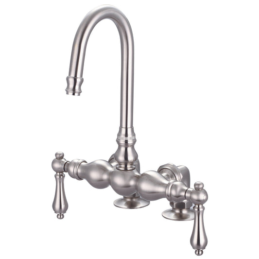 Water Creation Vintage Classic Center Deck Mount Tub F6-0016 9.25" Silver Solid Brass Faucet With Gooseneck Spout And 2-Inch Risers And Metal Lever Handles Without Labels