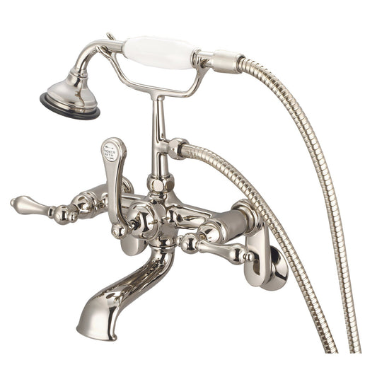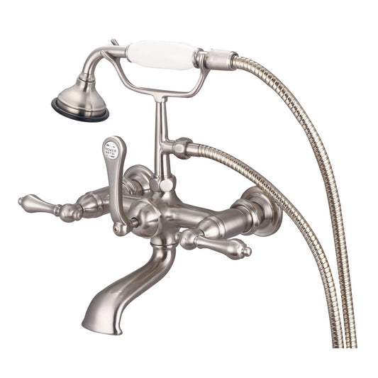 Water Creation Vintage Classic Spread Wall Mount Tub F6-0010 7" Silver Solid Brass Faucet With Straight Wall Connector And Handheld Shower And Metal Lever Handles Without Labels