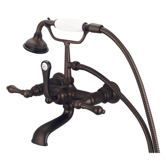 Water Creation Vintage Classic Spread Wall Mount Tub F6-0010 7" Brown Solid Brass Faucet With Straight Wall Connector And Handheld Shower And Metal Lever Handles, Hot And Cold Labels Included