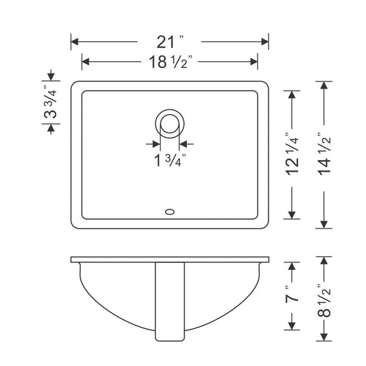 Wells Sinkware Rhythm 21" Rectangle White Traditional Vitreous Ceramic Undermount Bathroom Sink