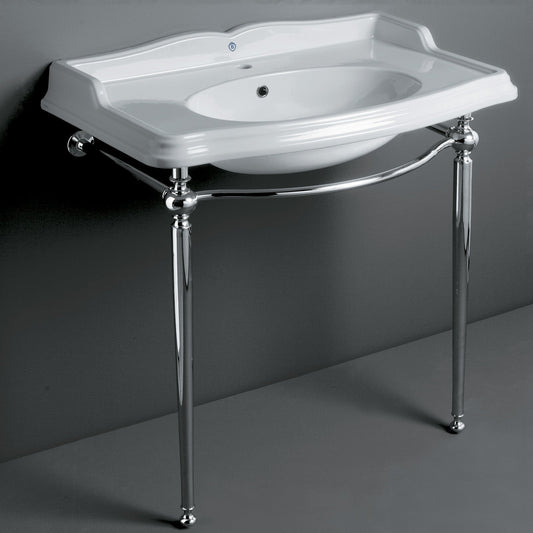 Whitehaus Britannia B-AR864-ARCG1 White Large Rectangular Sink Console With Front Towel Bar and Single Faucet Hole Drill