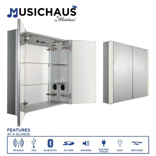 Whitehaus Musichaus WHFEL8069-S Double Mirrored Door Medicine Cabinet With USB, SD Card, Bluetooth, FM Radio, Speakers, Defogger, & Dimmer