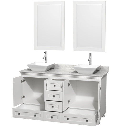 Wyndham Collection Acclaim 60" Double Bathroom White Vanity With White Carrara Marble Countertop And Pyra White Sinks