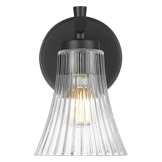Z-Lite Beau 1-Light Matte Black Steel Frame Clear Ribbed Glass Shade Wall Sconce
