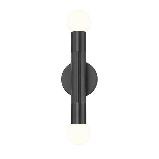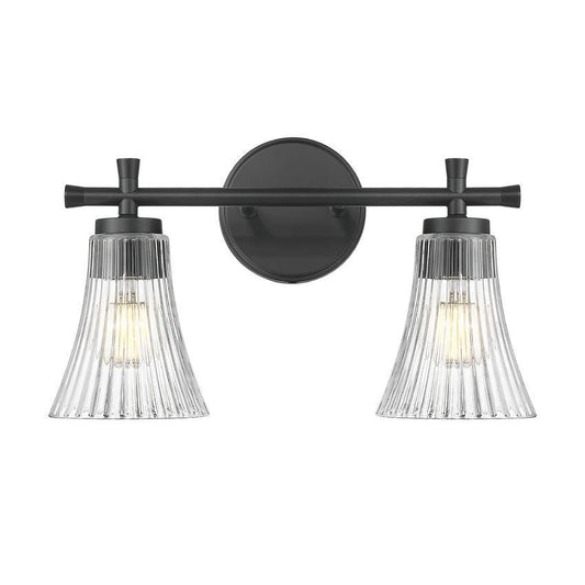 Z-Lite Beau 2-Light Matte Black Steel Frame Clear Ribbed Glass Shade Wall Sconce