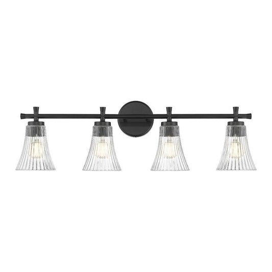 Z-Lite Lauren 4-Light Matte Black Steel Frame Clear Glass Shade Vanity Light