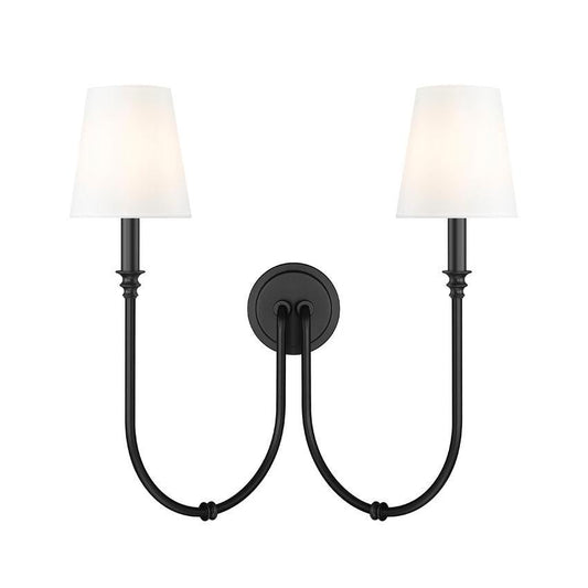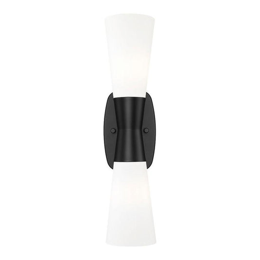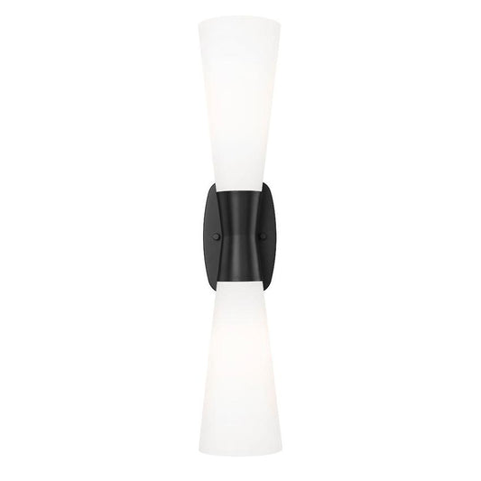 Z-Lite Emrys 4504-2S-MB 2-Light Matte Black Steel Frame White Opal Glass Shade Wall Sconce