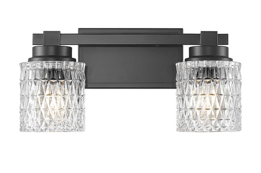 Z-Lite Jacqueline 16" 2-Light Matte Black Steel Frame Clear Diamond Shade Vanity Light