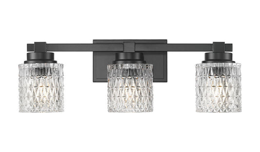 Z-Lite Jacqueline 23" 3-Light Matte Black Steel Frame Clear Diamond Shade Vanity Light