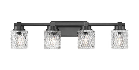 Z-Lite Jacqueline 32" 4-Light Matte Black Steel Frame Clear Diamond Shade Vanity Light