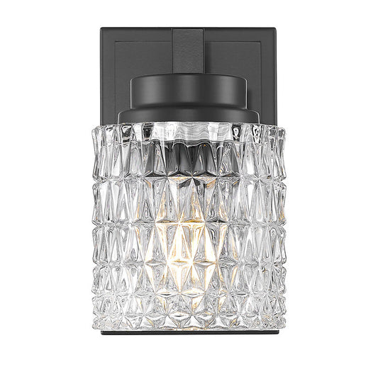 Z-Lite Jacqueline 7" 1-Light Matte Black Steel Frame Clear Diamond Glass Shade Wall Sconce