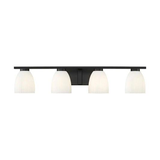 Z-Lite Naya 4-Light Medium Bulb Base Matte Black Steel Frame Matte Opal Glass Shade Vanity Light