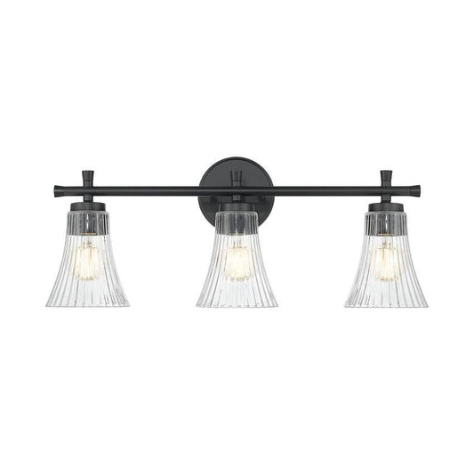 Z-Lite Sutton 3-Light Matte Black Steel Frame Clear Glass Shade Vanity Light