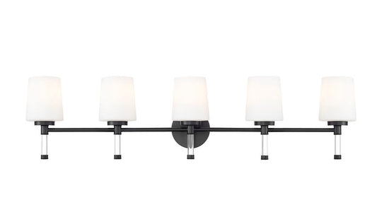 Z-Lite Henri 42" 5-Light Matte Black Steel Frame White Opal Glass Shade Vanity Lighting